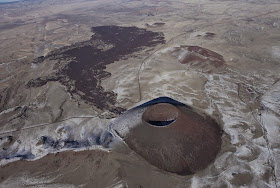Great view from right on top of SP Crater. Note how the degassed lava pool that was in the crater leaked out such that the flow extended about four miles downslope to the north.